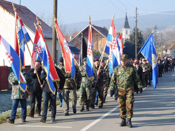 Kolona hrvatske časti, na čelu koje su išli hrvatski stijegovi i ratne zastave, zaputila se potom u Dom kulture gdje je upriličen svečani kulturno-umjetnički program i premijerno prikazivanje dokumentarnog filma "Ovčara, neispričana priča".