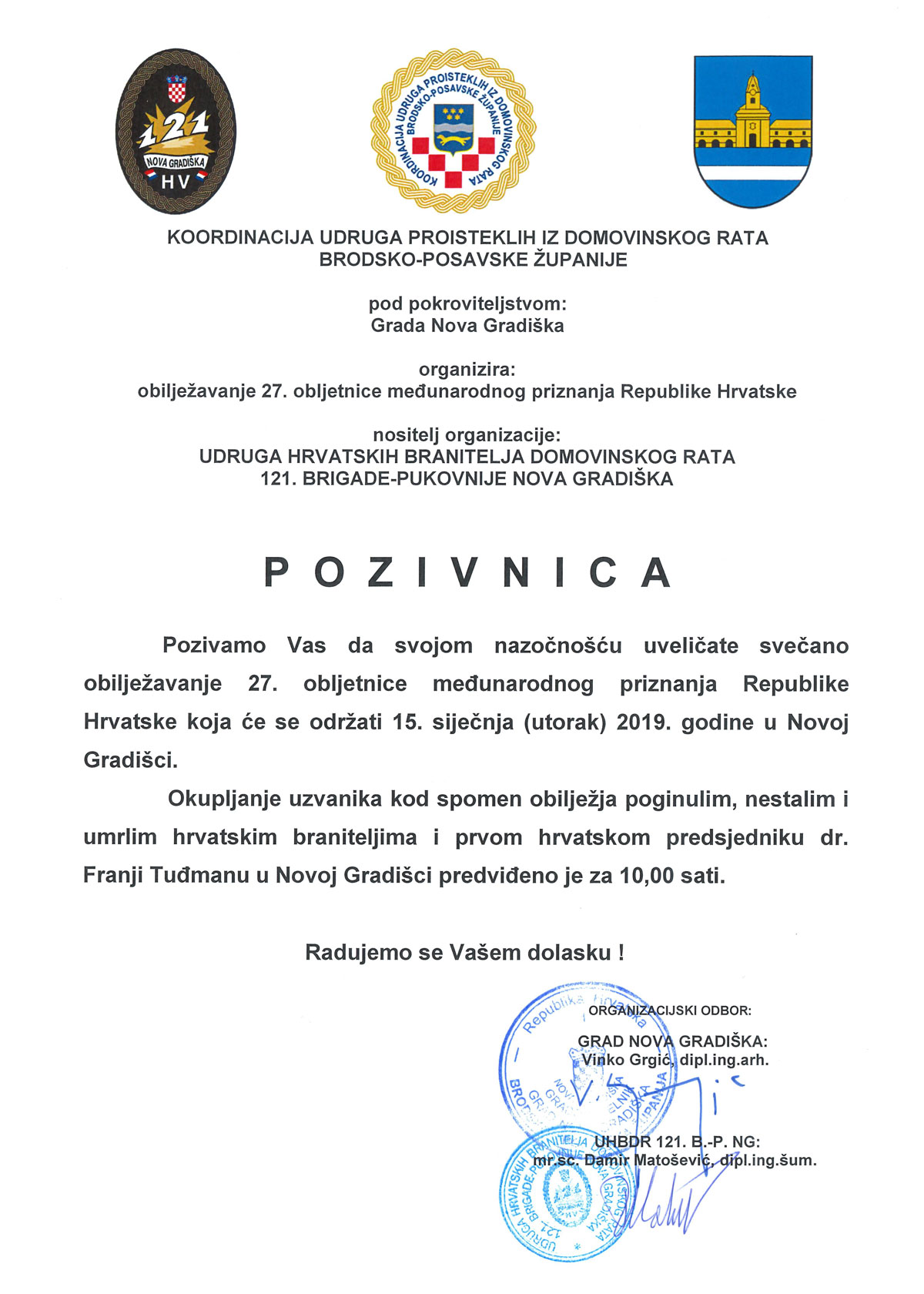 - Kategorija: Udruga hrvatskih branitelja Domovinskog rata 121. brigade – Pukovnija Nova Gradiška